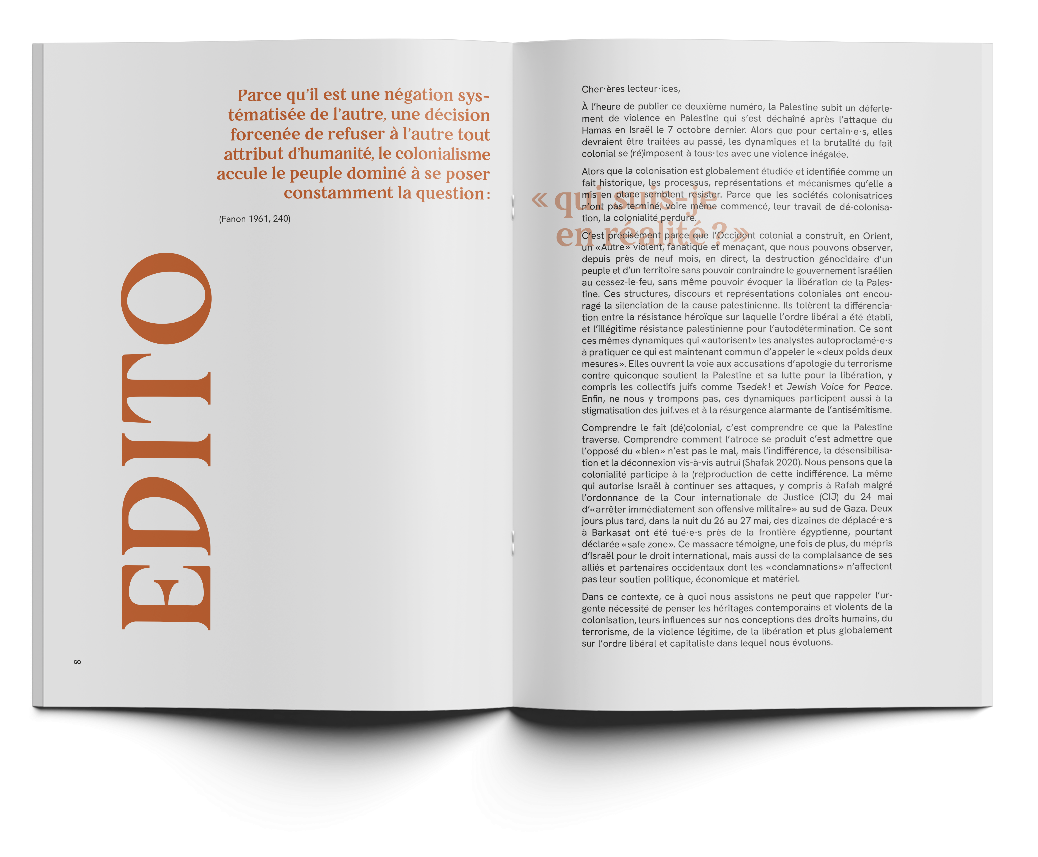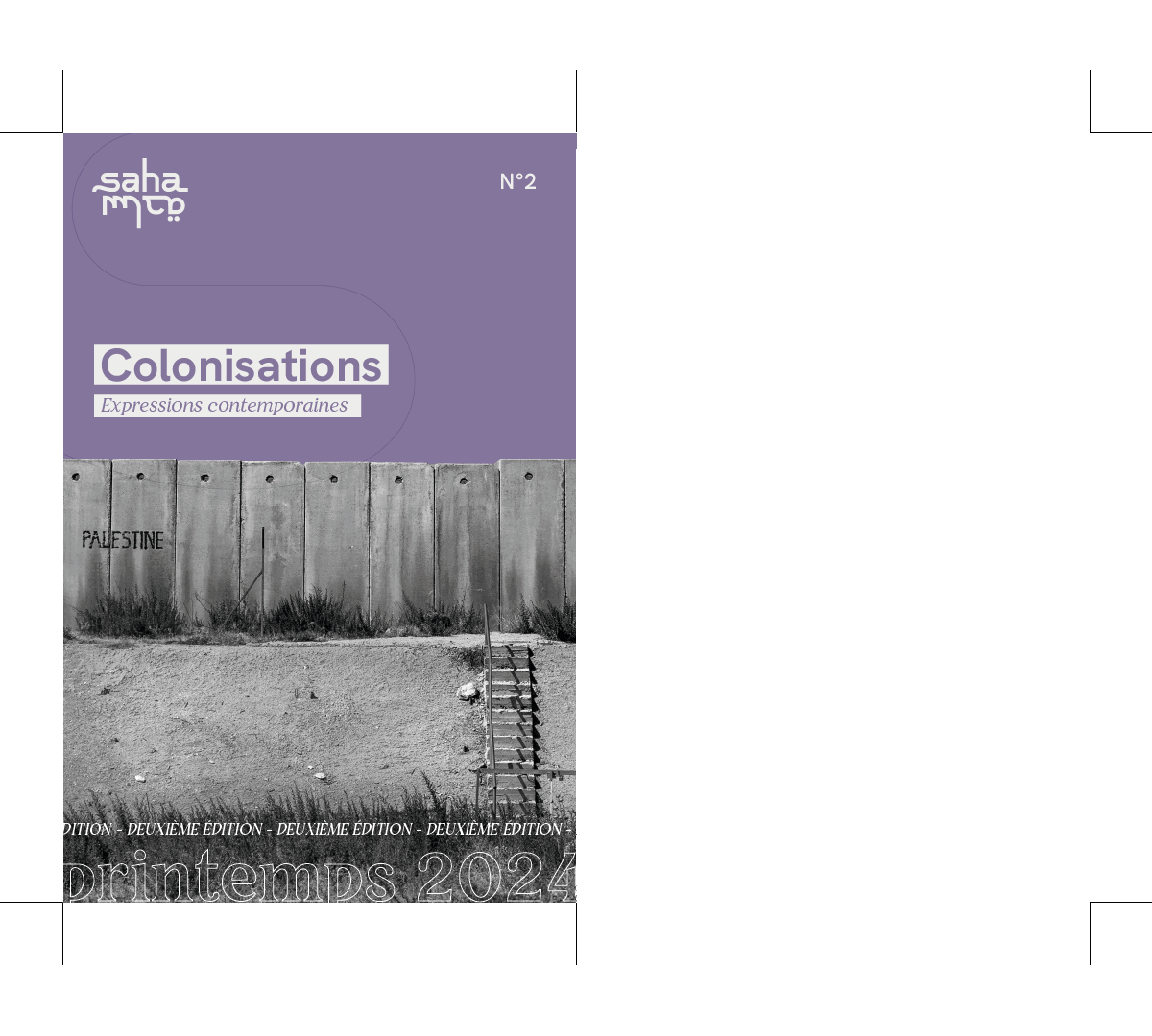 Saha est une association étudiante qui promeut des artistes et des doctorants sur des thématiques engagées du Moyen-Orient. L’association lance une revue annuelle contenant un entretien, des articles de doctorants et des oeuvres d’art portant essentiellement sur le Moyen-Orient. J’ai donc eu l’opportunité de réaliser toute la mise en page de la revue en suivant l’identité visuelle de l’association.